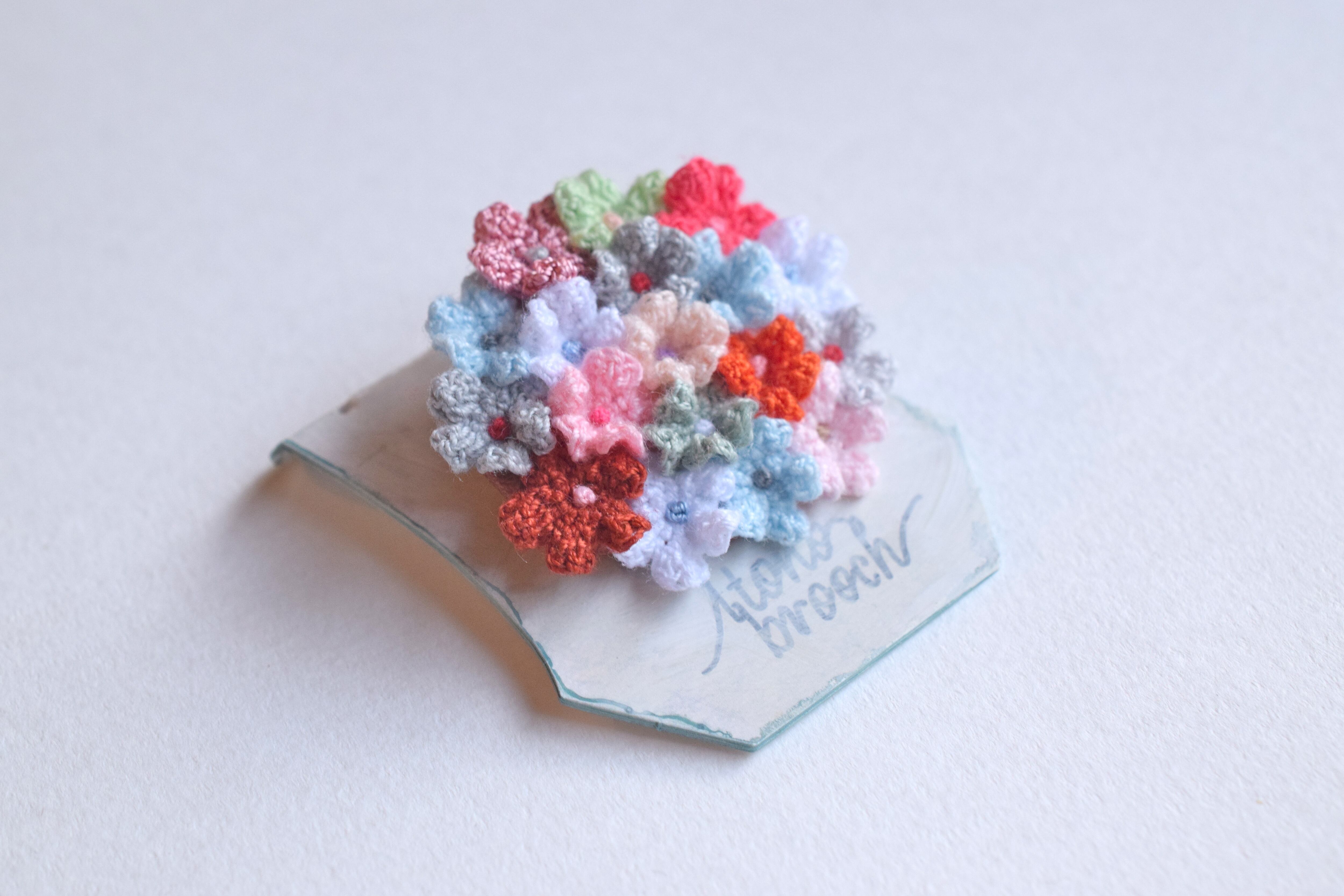 ブローチ{ 小花の花束 ピンク×ソルト }