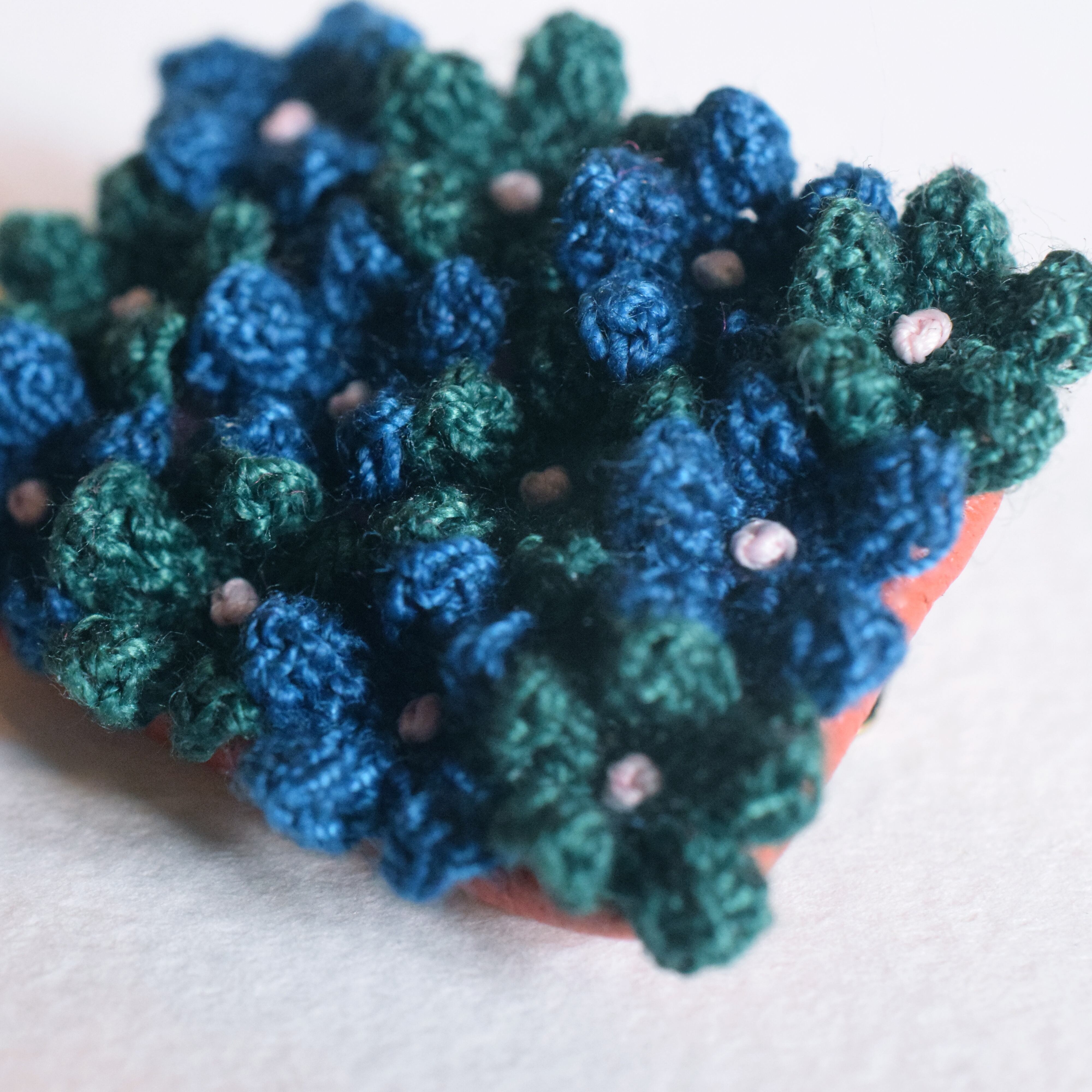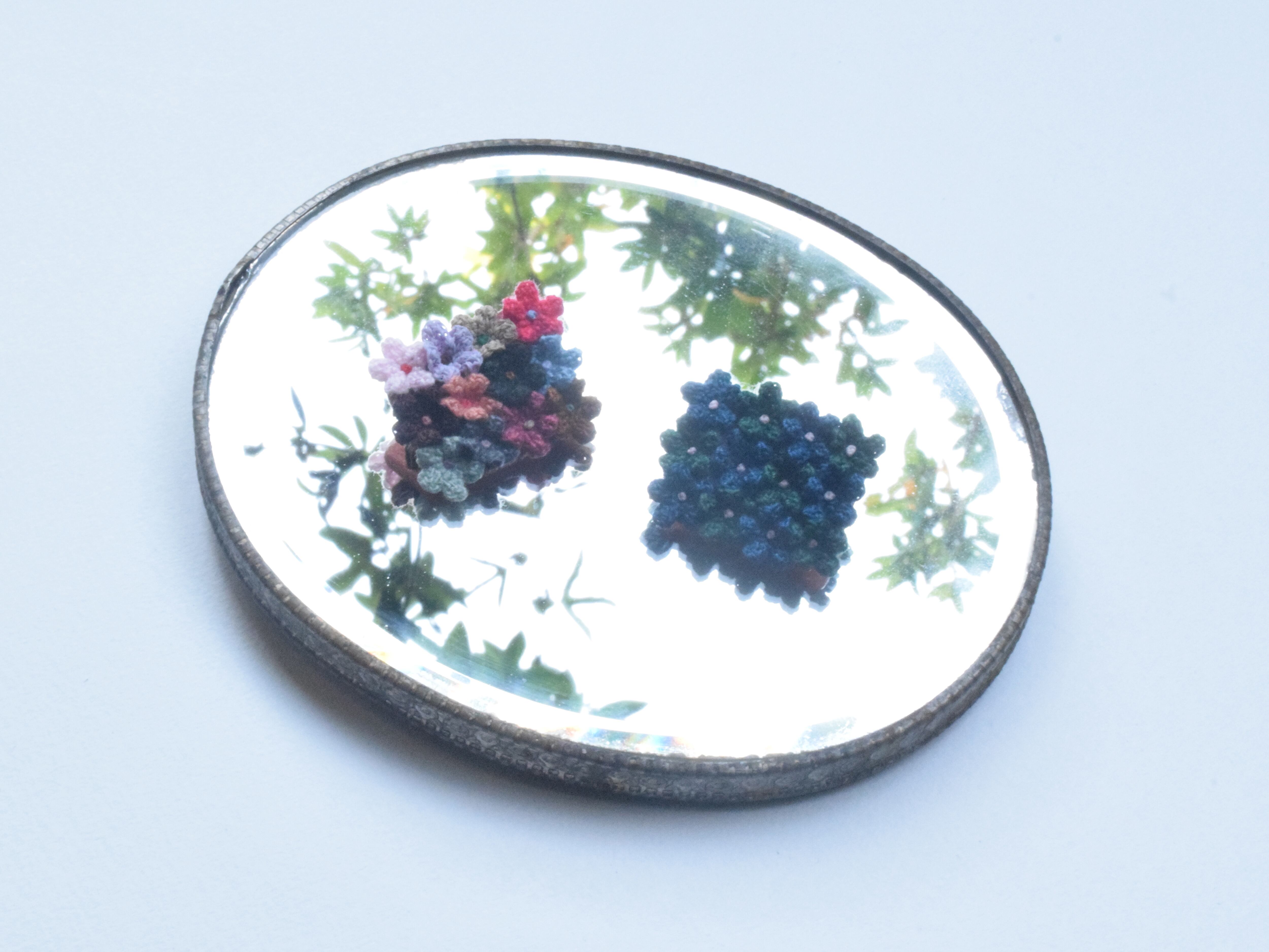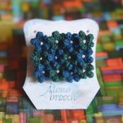 ブローチ{ 小花の花束 ダークグリーン スクエア }