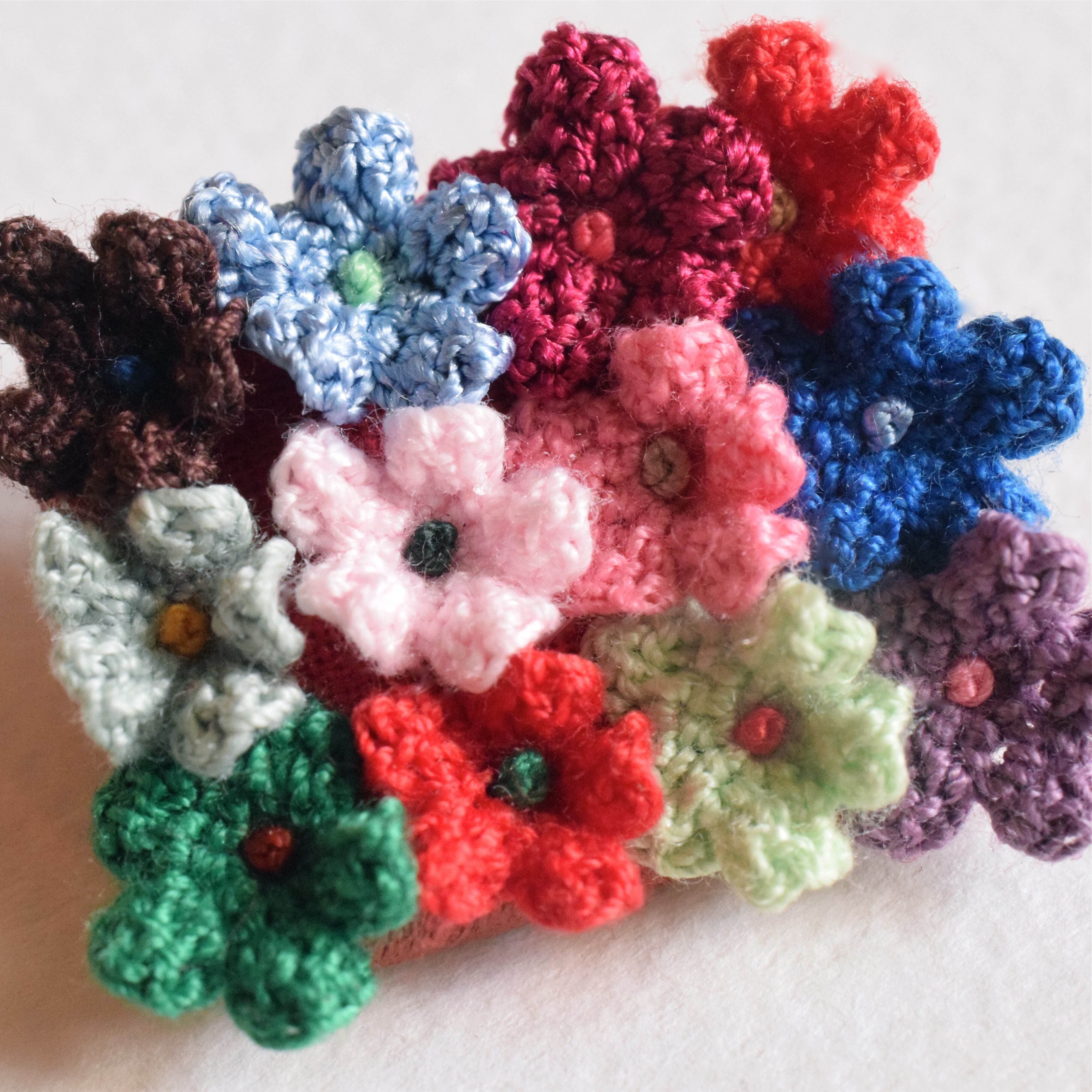 お花の部分が手編みになっております