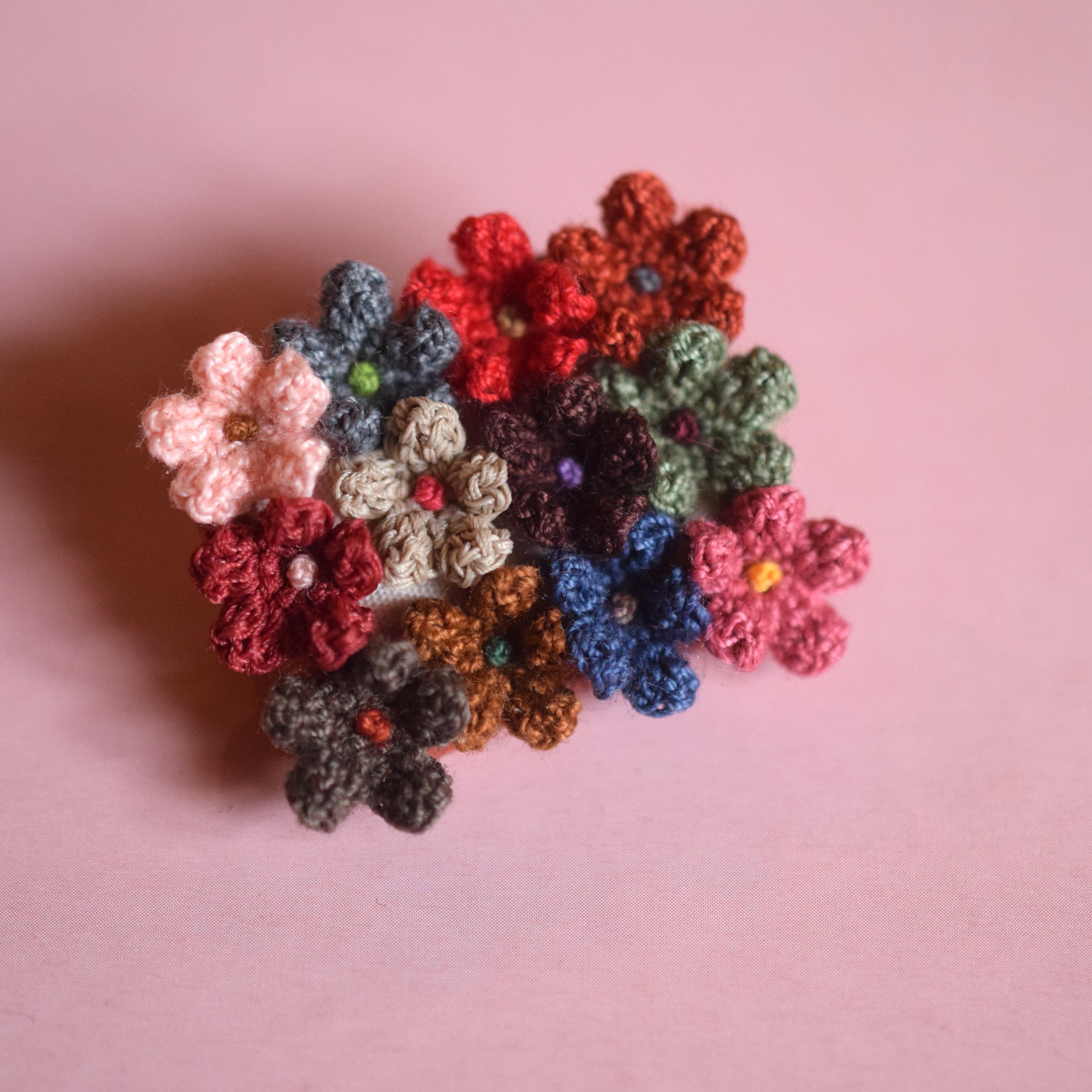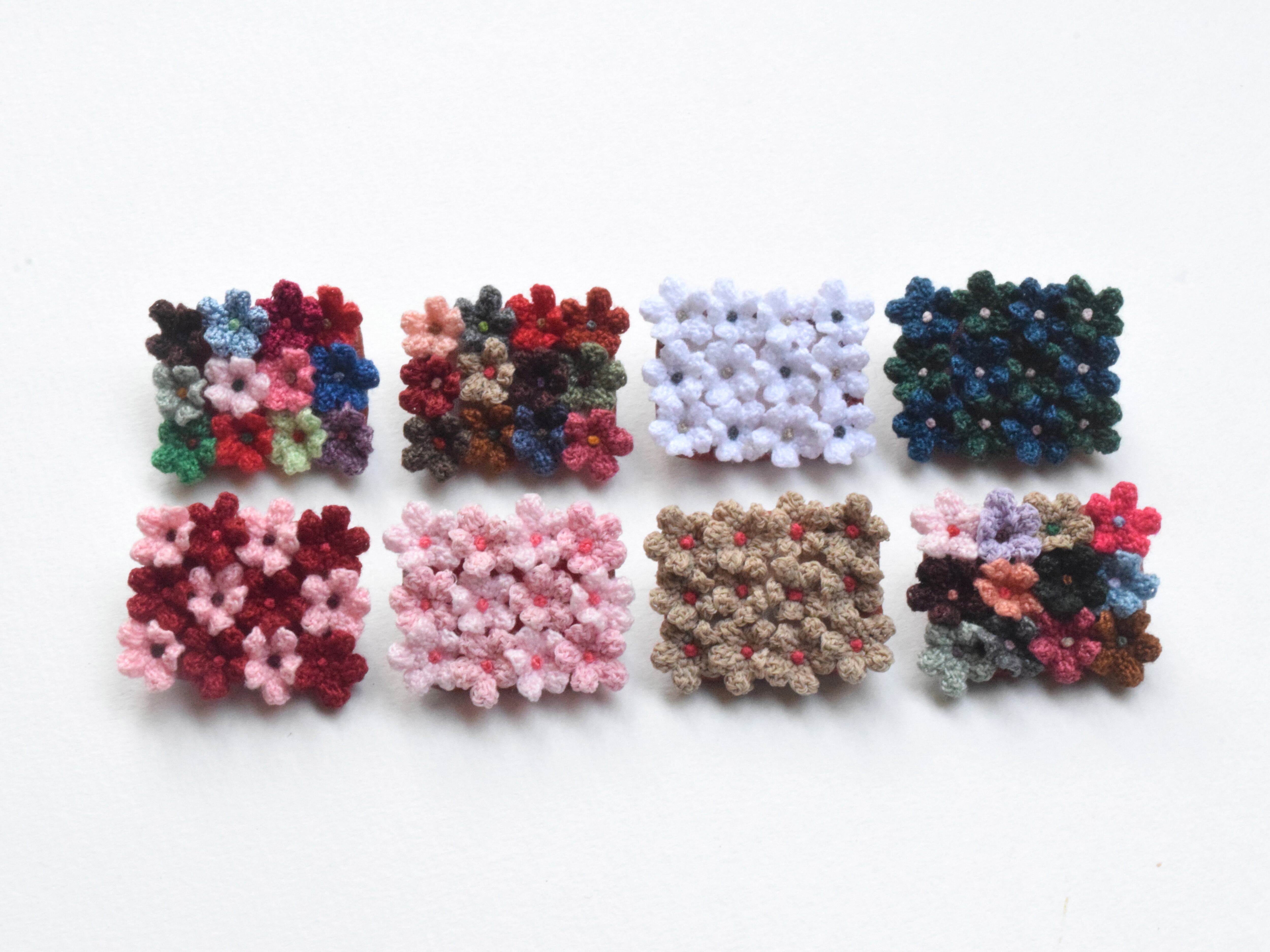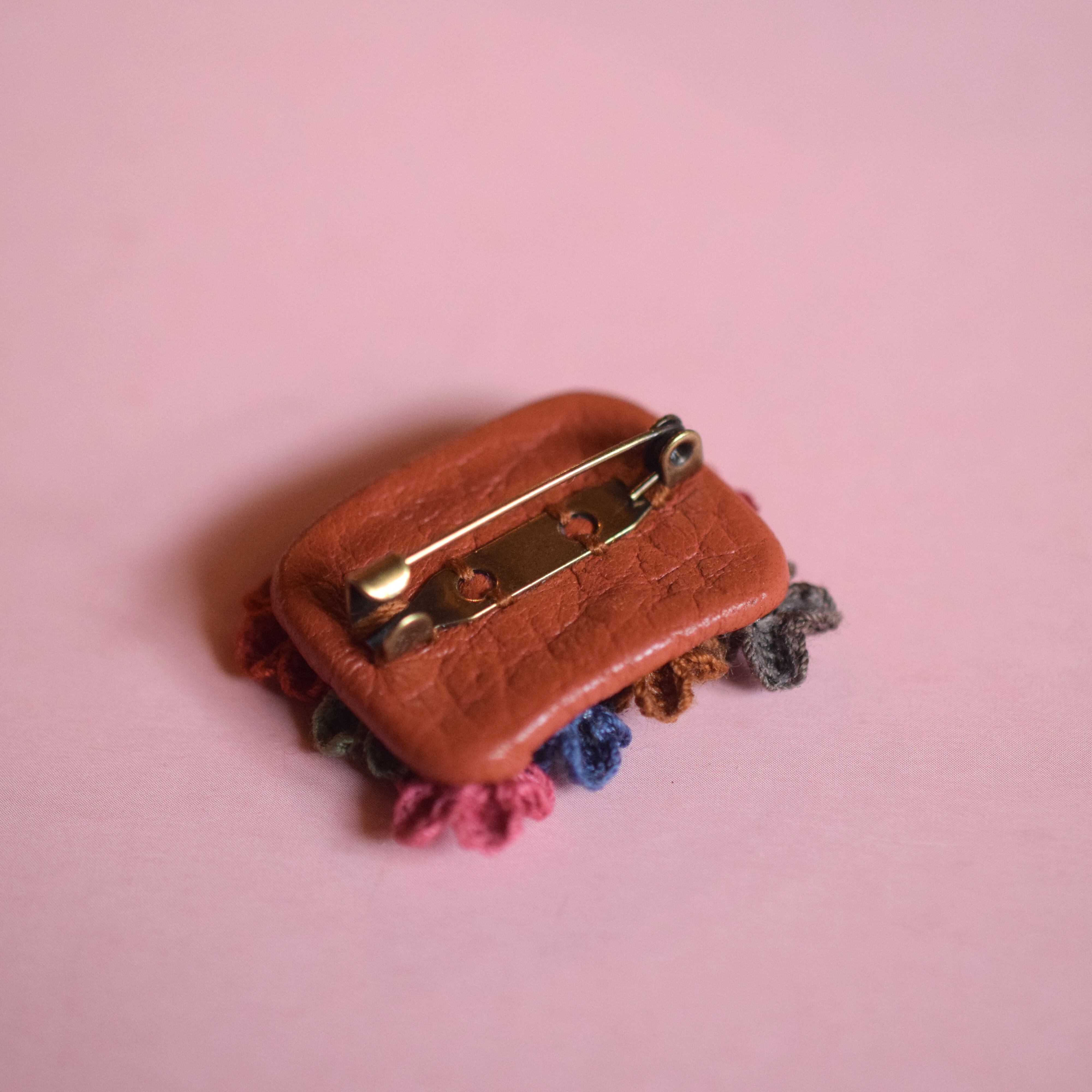 ブローチ{ 小花の花束 ブラウン×赤 スクエア }