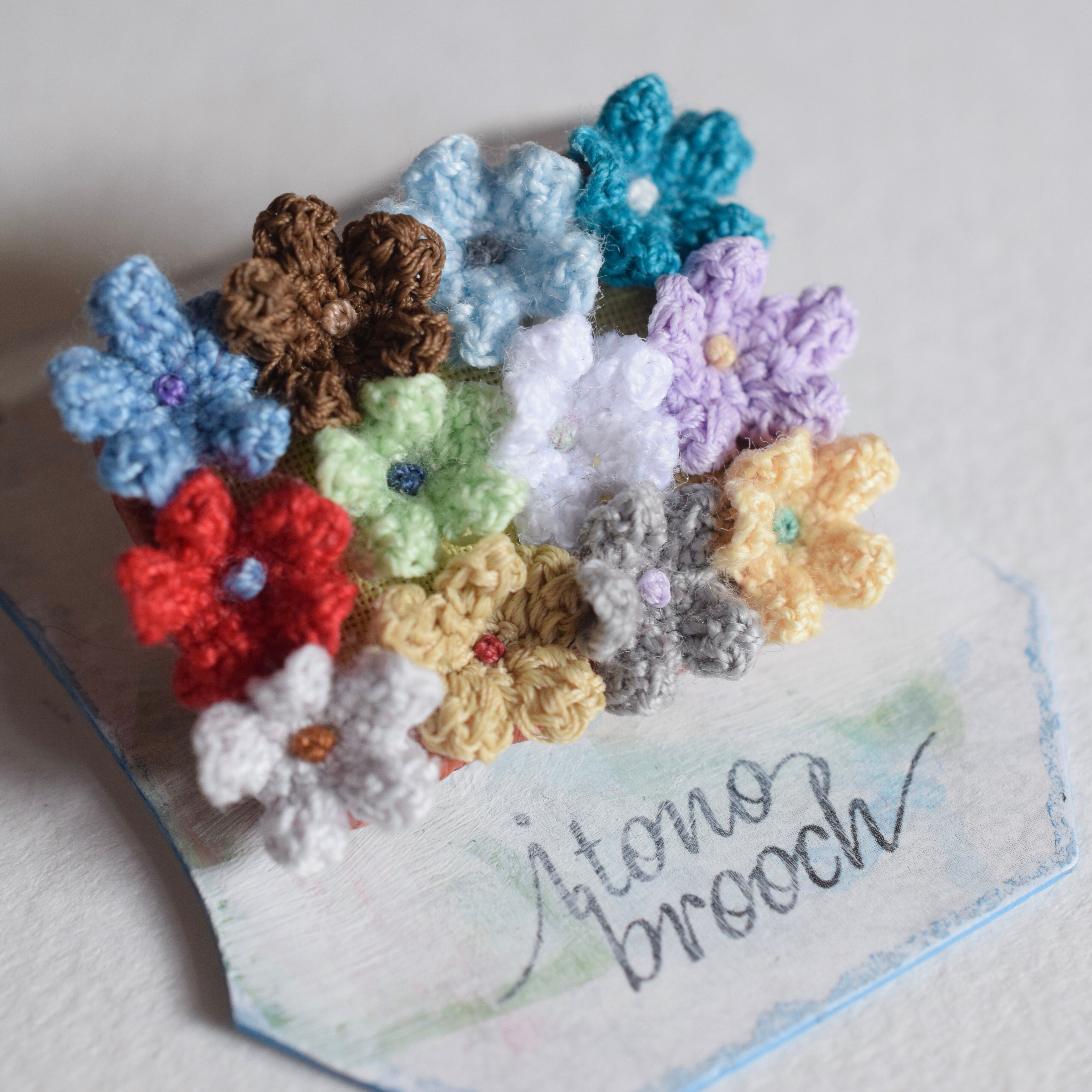 ブローチ{ 小花の花束 北欧カラー スクエア }