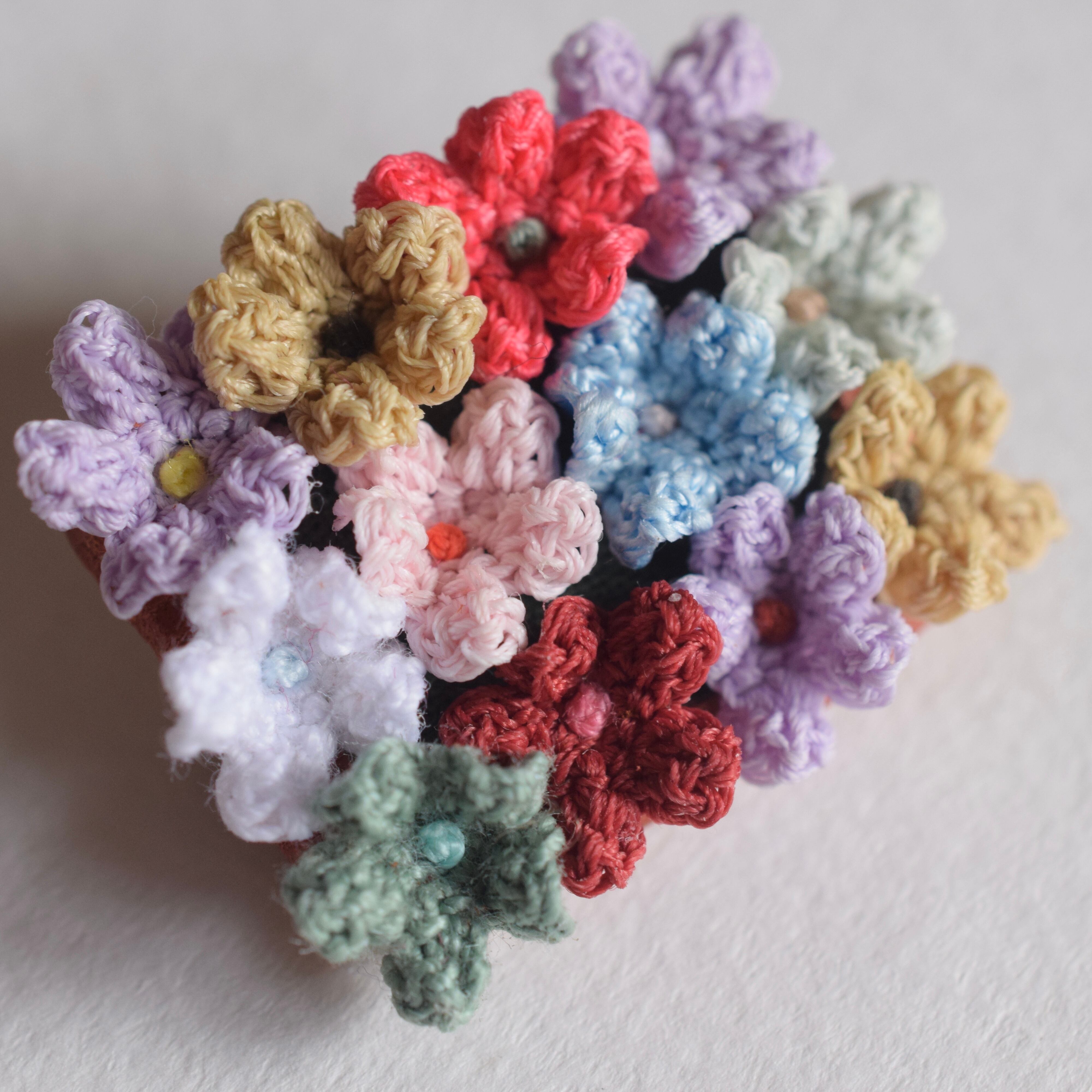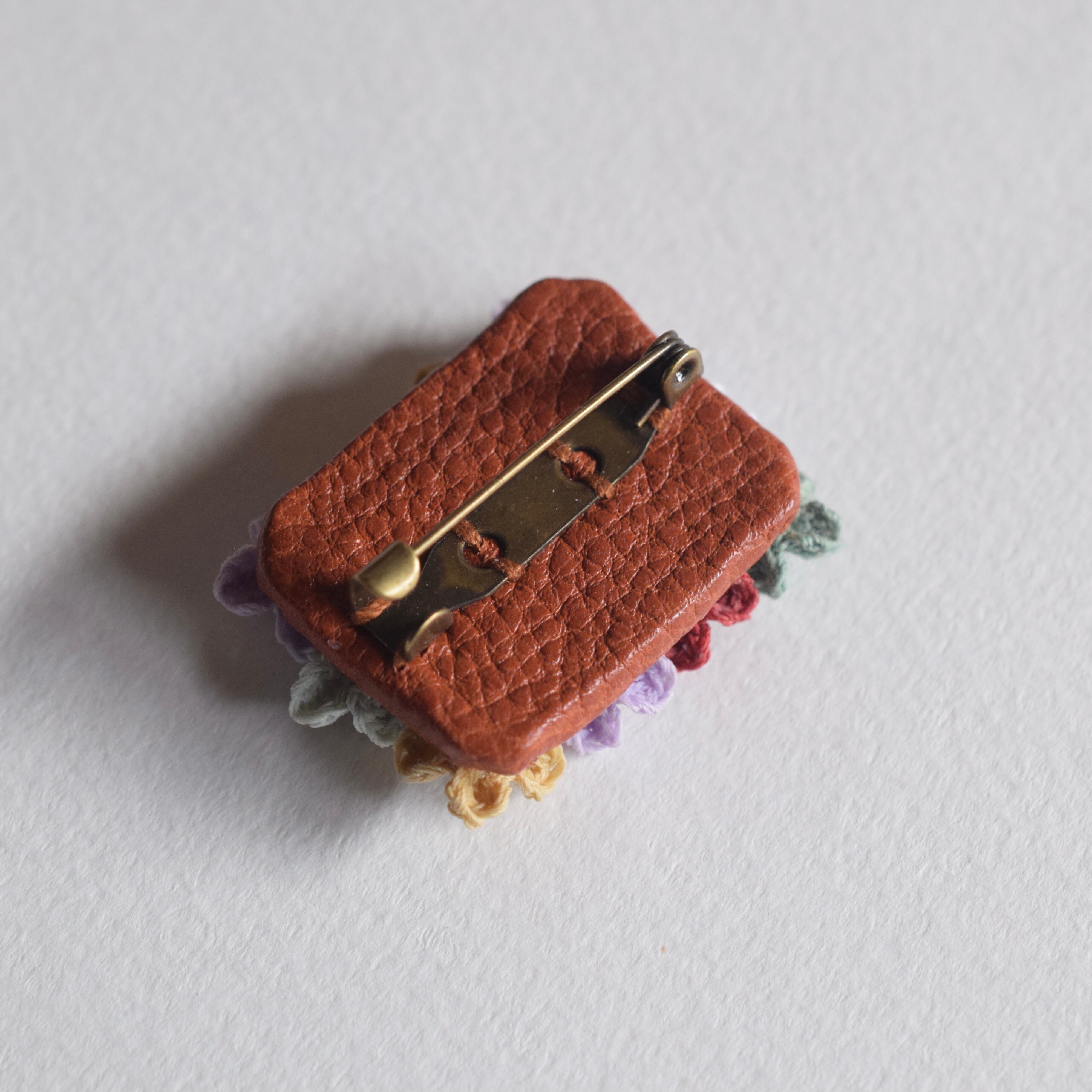 ブローチ{ 小花の花束 淡紫×パステル スクエア }
