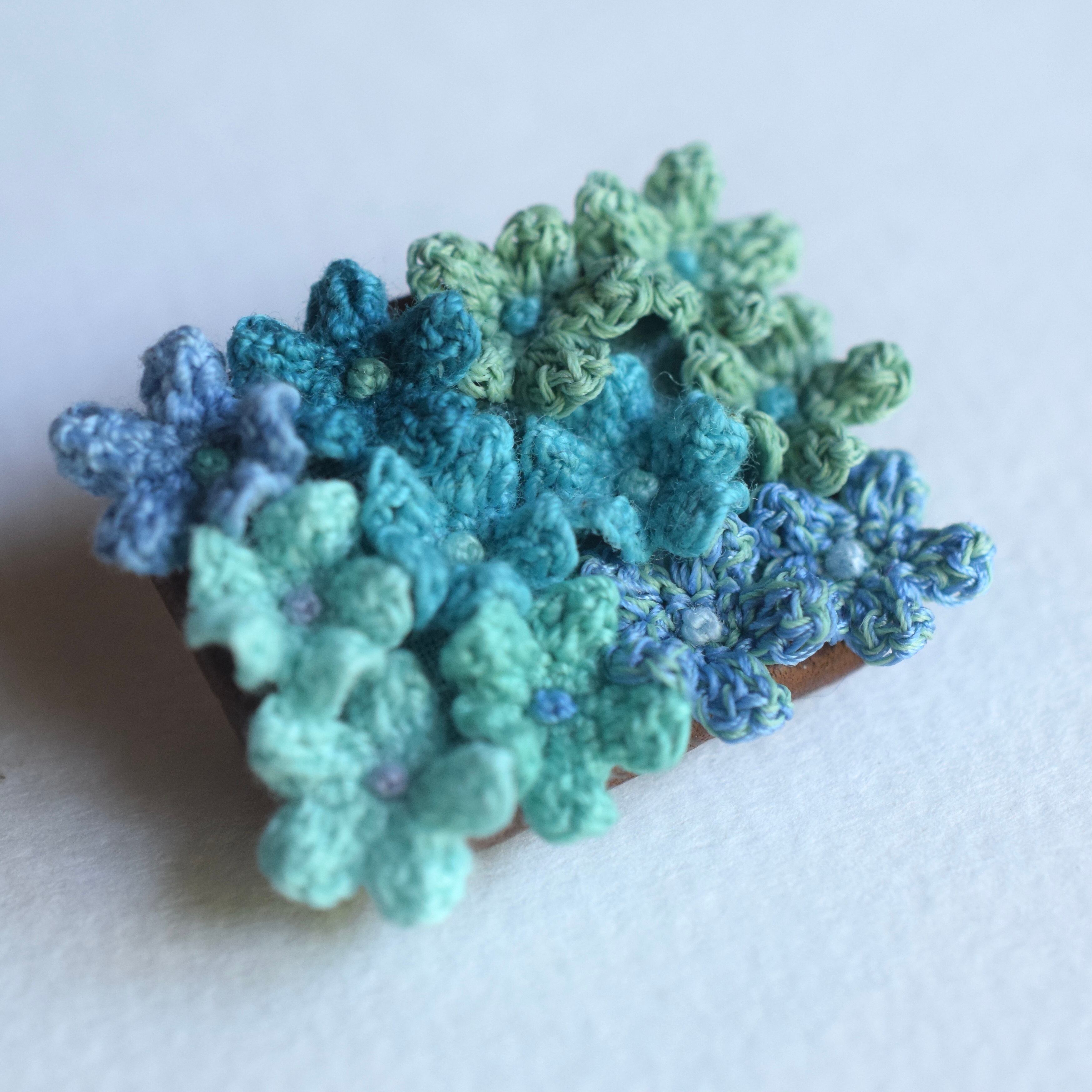 ブローチ{ 小花の花束 エメラルド スクエア }