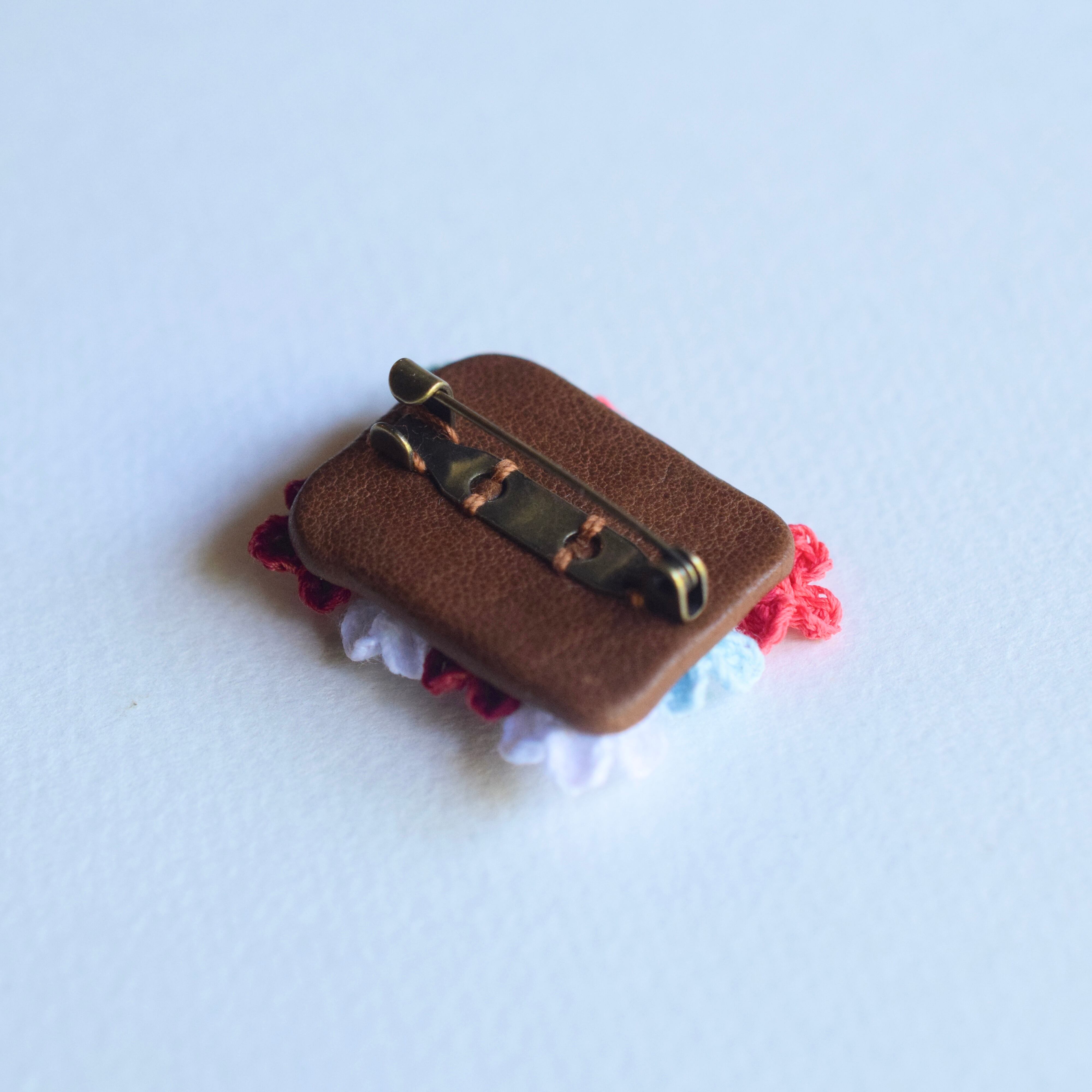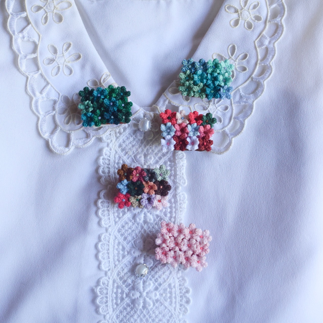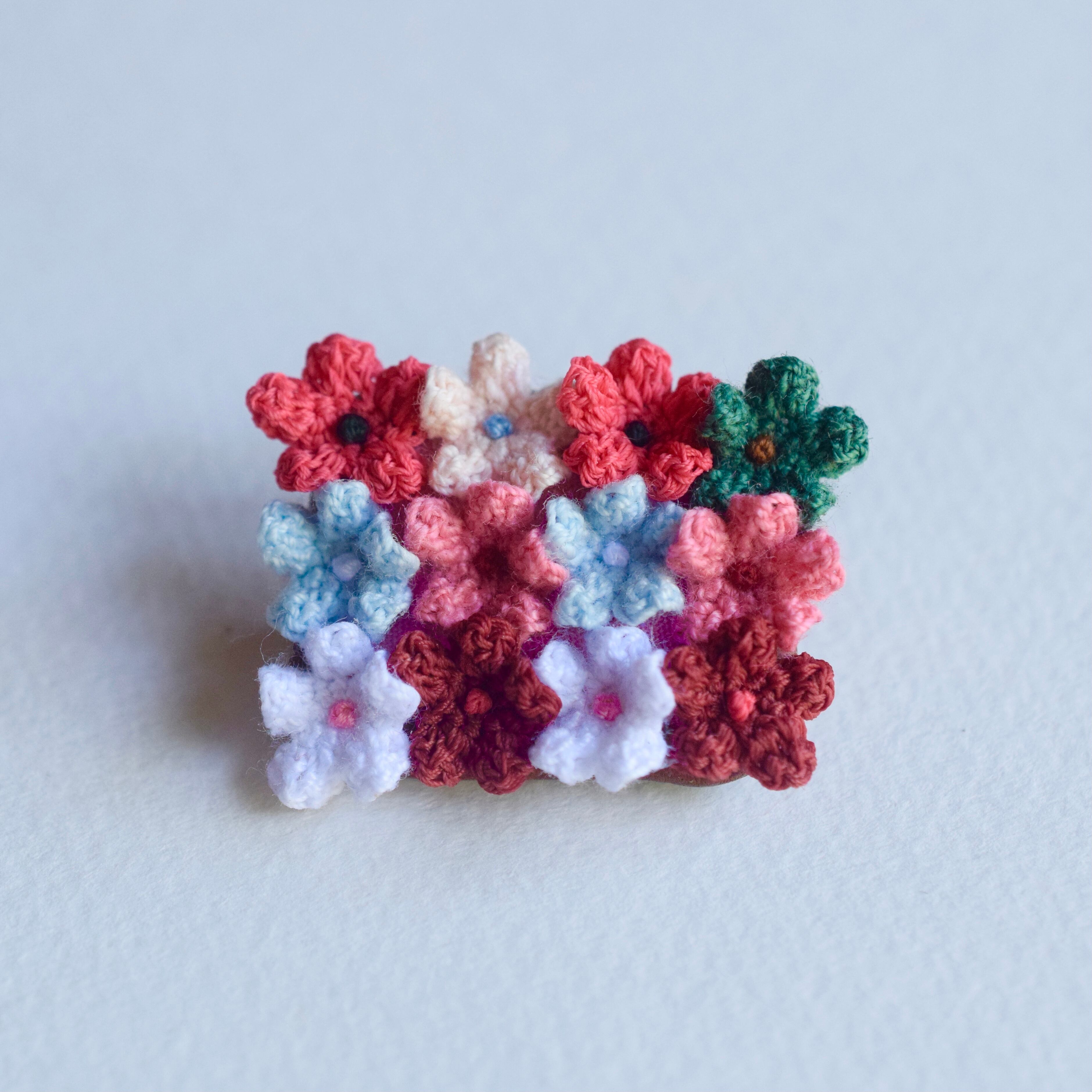 ブローチ{ 小花の花束 赤×ピンク スクエア }